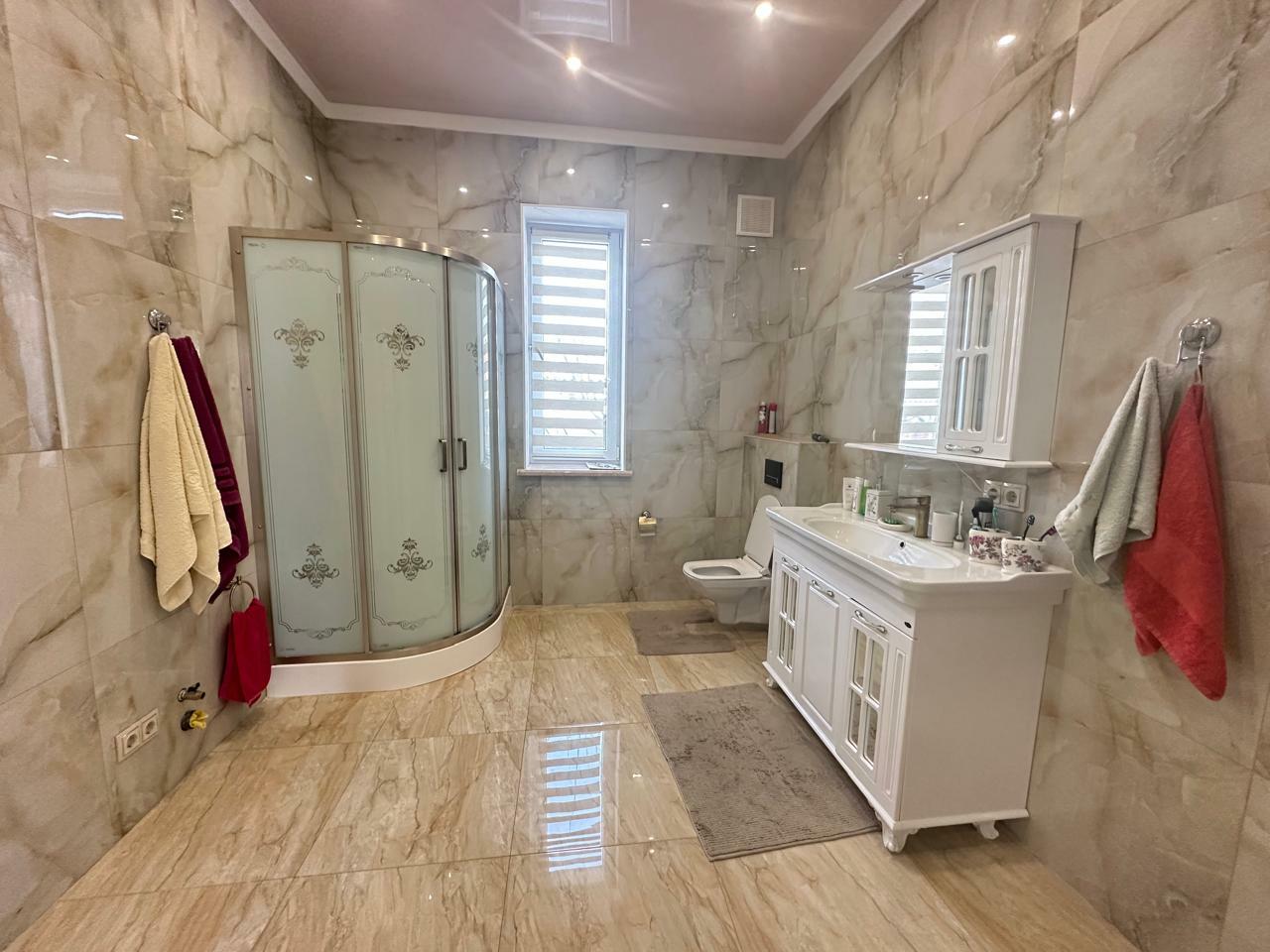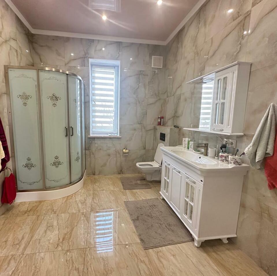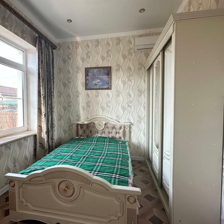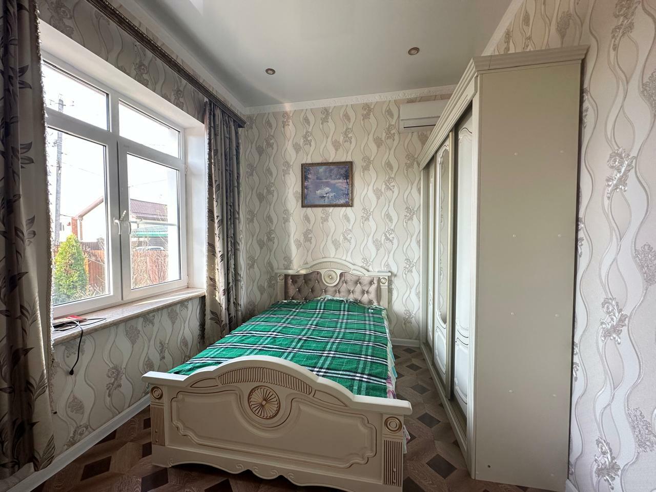 ДЖ-539 Продаем одноэтажный жилой дом 2017 года постройки, материал стен - газоблок+ фасадный материал короед, 4 комнаты (15.5; 12.5; 11; 10.9 кв м - три изолированные и одна проходная), кухня 14.2 кв м, санузел 5.2 кв м, внутри дома выполнена качественная отделка, система - теплый пол, коммуникации - центральные, сетевые, биосептик Танк (Россия), есть бак для воды на 400 л, насос, 3 фазы электричество (15кВт), газовый двухконтурный котел (для нагрева воды и для обогрева радиаторов), в доме останется вся сантехника, частично мебель и техника. Земельный участок 5.5 соток, ровный, заезд с асфальта, участок огорожен забором, фасадная часть 14.3 м, на территории много плодовых деревьев- груша, яблони, черешня, слива, алыча. В пешей доступности магазины, сфера услуг, городской парк, школа, садик и др. Обременений нет. Звоните, быстрый показ.