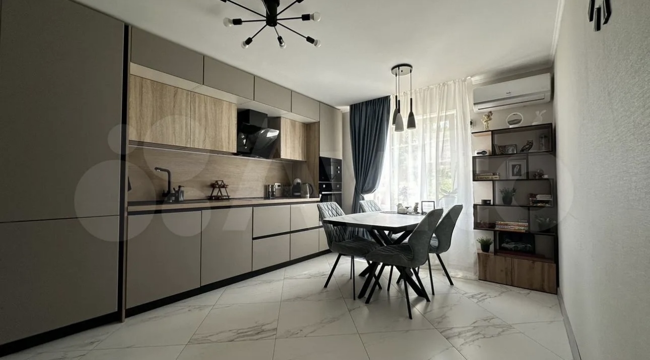 ДЖ-394/1 Продаём жилой дом в городе Горячий Ключ, кирпичный дом, 2022 года постройки, 1эт, s-77 кв м, 2 комнаты – 15.2; 14.8 кв.м, кухня-гостиная 30 кв.м, санузел совмещённый 5.5 кв.м, просторная прихожая 9.8 кв.м, тёплый пол, предчистовая отделка, автономное отопление, коммуникации - электричество, вода, газ, канализация центральная, забор, ворота, бетонированный заезд для автомобилей.